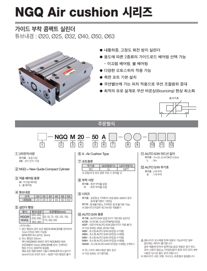 | NGQM32-150 | NGQM32-175 | NGQM32-200 | NGQM32-250 | TPC 가이드 부착 콤팩트 실린더 |