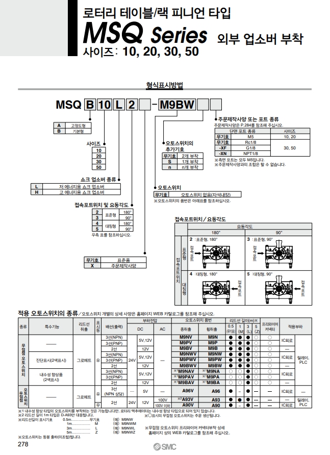 MSQB20H2, MSQB20H3, MSQB20H4, MSQB20H5, SMC 로터리 테이블/랙 피니언 타입 알아보기.
