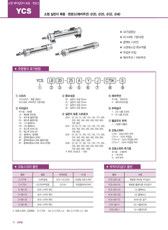 YCS32-500A, YCS32-600A, YCS32-700A, YCS32-800A, YCS32-900A, YCS32-1000A, 연우 소형 실린더 알아보기.