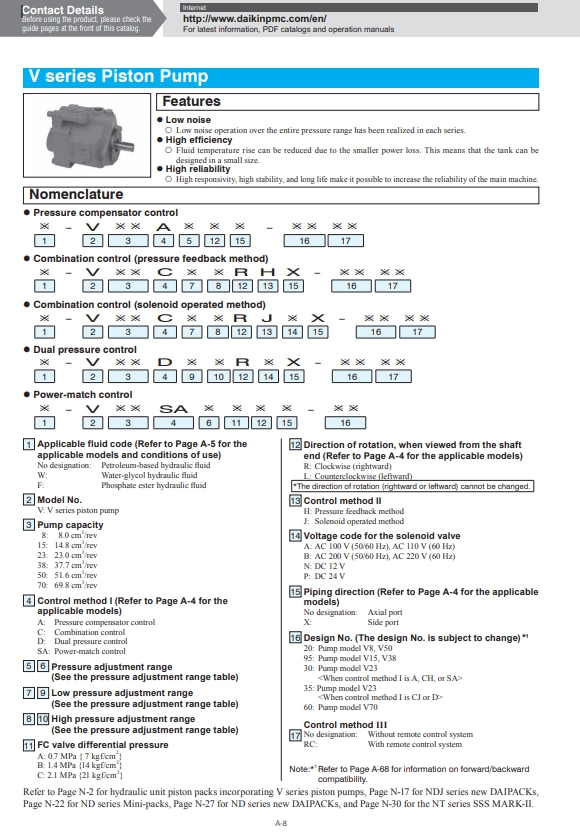 V15A1R-95-100, V38A1R-95-100, V8A1R-20-100, V50A1R-20-100, V23A1R-35-100, V70A1R-60-100, 다이킨 피스톤 펌프 알아보기.