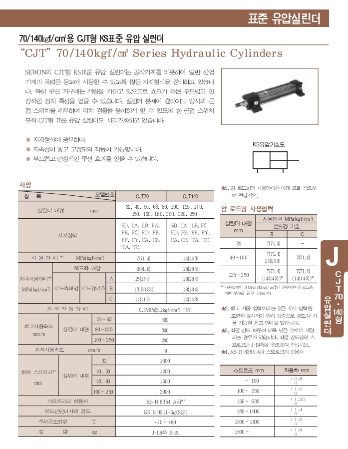 CJT140-FE32B210B-ABD-K-21, 70/140kgf/㎠용 CJT형 KS 표준 유압 실린더 알아보기.