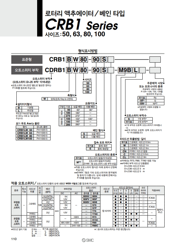 CDRB1BW50-270S, CDRB1BW50-90S, CDRB1BW50-180S, SMC 로터리 액추에이터 / 베인 타입 알아보기.
