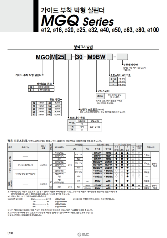 MGQM32-200, MGQM32-25, MGQM32-50, MGQM32-75, MGQM32-100, MGQM32-125, MGQM32-150, MGQM32-175, SMC 가이드 부착 박형 실린더 알아보기.