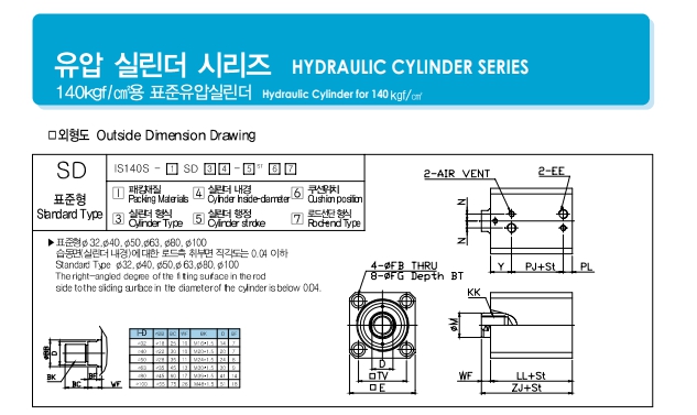 IS140S SD63-25M, ISTC 140kgf/㎠ 용 표준 유압 실린더 알아보기.