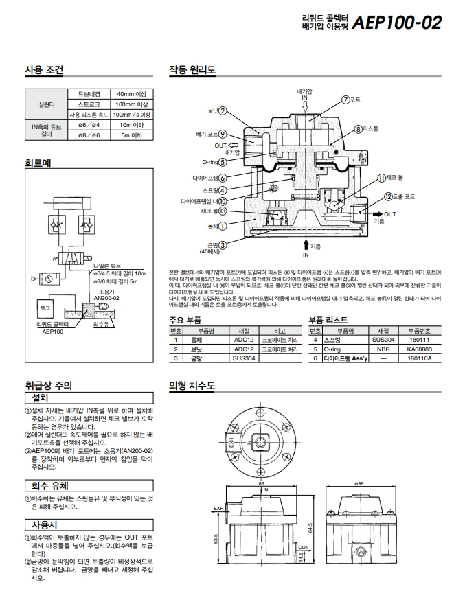 AEP100-02, SMC 리퀴드 콜렉터 배기압 이용형 알아보기.
