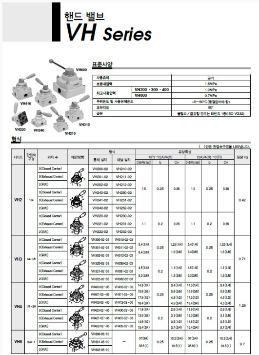 VH201-02, VH200-02, VH202-02, VH240-02, VH241-02, VH242-02, VH220-02, VH221-02, VH222-02. SMC 핸드 밸브.