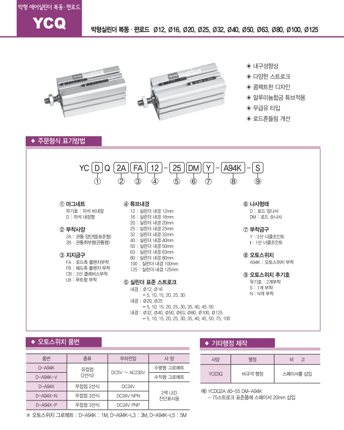 YCQ2A20-45DM, YCQ2A20-5DM, YCQ2A20-10DM, YCQ2A20-15DM, YCQ2A20-20DM, YCQ2A20-25DM, YCQ2A20-30DM, YCQ2A20-35DM, YCQ2A20-40DM, 연우 박형실린더 알아보기.