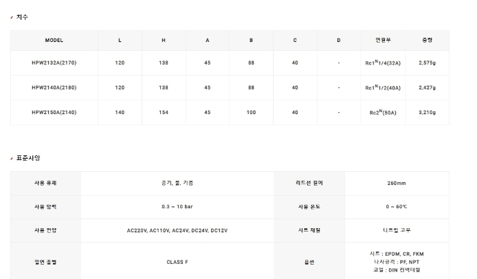 | HPW2140A(2180), HPW2132A(2170), HPW2150A(2140), 효신 물용 2WAY 솔레노이드 밸브 (상시닫힘). (1) | 2024.05.30 |