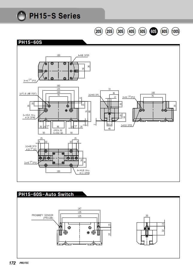 프로텍 평행개폐형 에어척 PH15-60S 제품입니다.