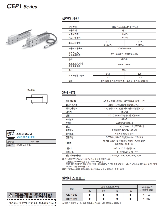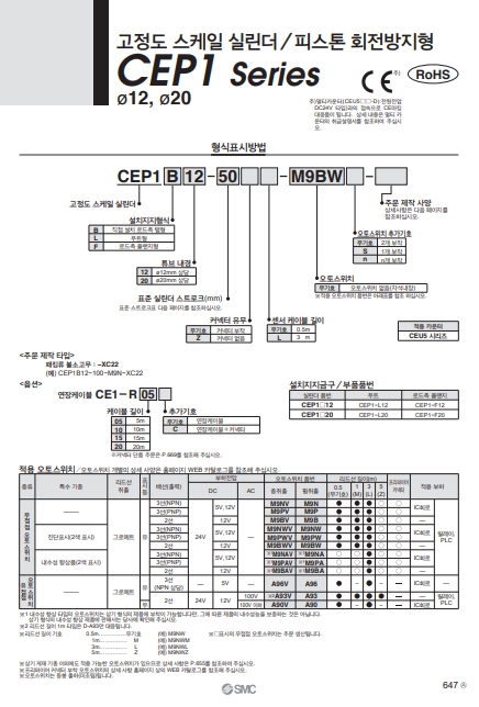 CEP1B12-100L, CEP1B12-25, CEP1B12-50, CEP1B12-75, SMC 고정도 스케일 실린더 알아보기.