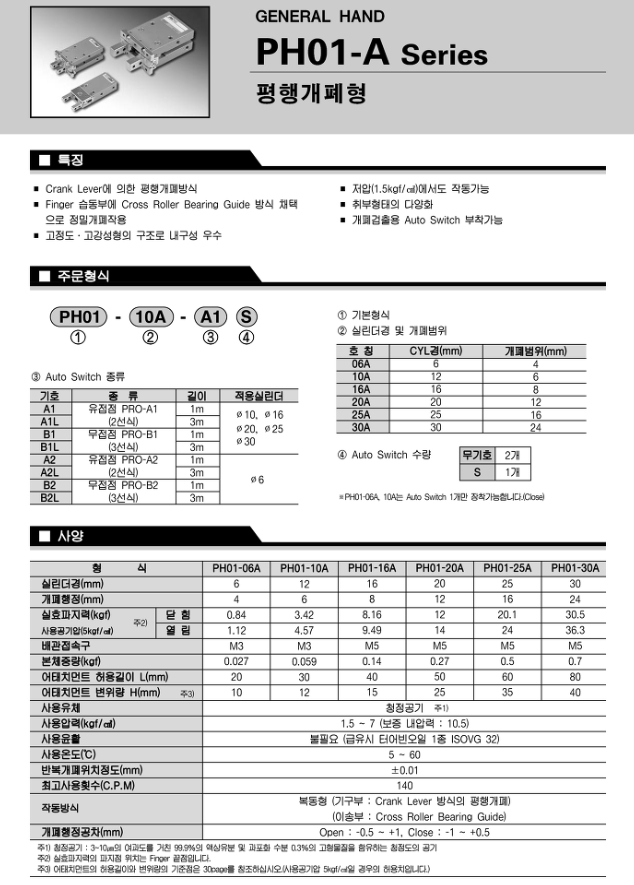 PH01-20A, PH01-06A, PH01-10A, PH01-16A, PH01-25A, PH01-30A 프로텍 에어척 알아보기