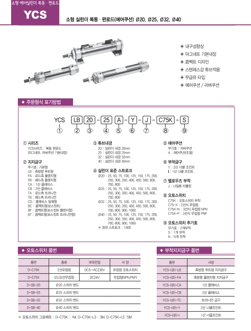 YCS20-200A, YCS20-100A, YCS20-125A, YCS20-150A, YCS20-175A, YCS20-250A, YCS20-300A, YCS20-350A, 연우 실린더 알아보기.