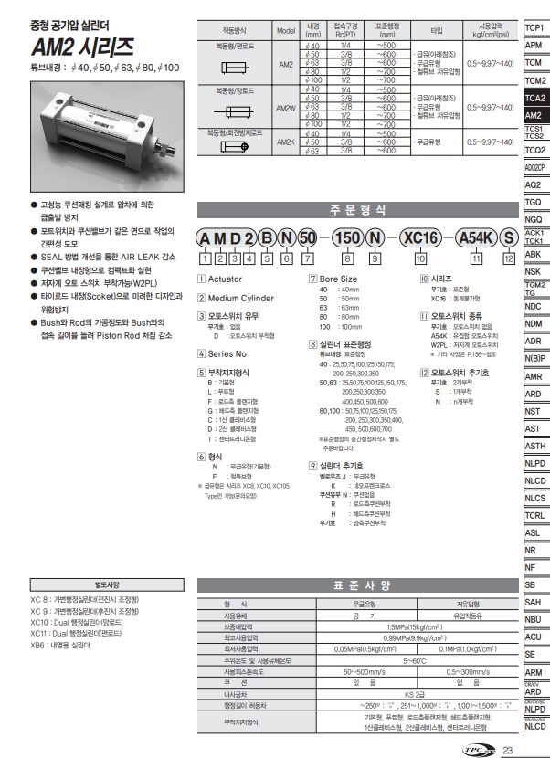 AMD2 BN40-75-A54K, AMD2 BN40-25-A54K, AMD2 BN40-50-A54K, AMD2 BN40-100-A54K, AMD2 BN40-125-A54K, AMD2 BN40-150-A54K, AMD2 BN40-175-A54K, TPC 에어실린더 알아보기.