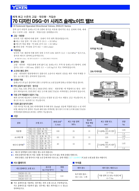 | DSG-01-2B3B-D24-70 | 유켄 솔레노이드 밸브 |