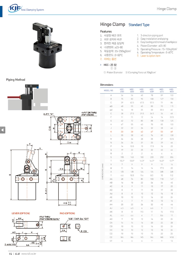 HGC-8023, HGC-2502, HGC-3203, HGC-4005, HGC-5009, HGC-6315, KJF 힌지 클램프 알아보기.