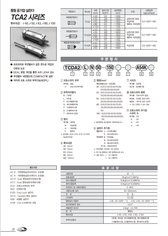 TCDA2 BN50-50, TCDA2 BN50-75, TCDA2 BN50-100, TCDA2 BN50-125, TCDA2 BN50-150, TCDA2 BN50-175, TCDA2 BN50-200, TCDA2 BN50-250, TPC 에어실린더 알아보기.