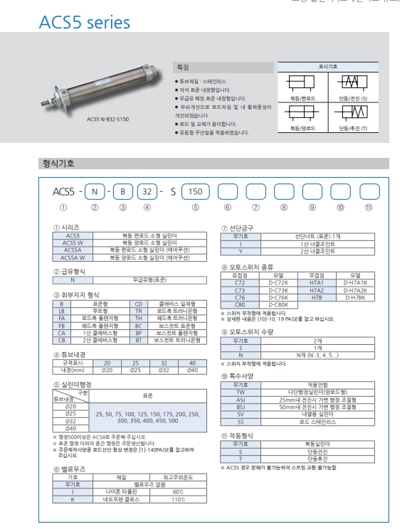 | ACS5-N B40-S175 | ACS5-N B40-S200 | ACS5-N B40-S250 | ACS5-N B40-S300 | KCC 에어실린더 |