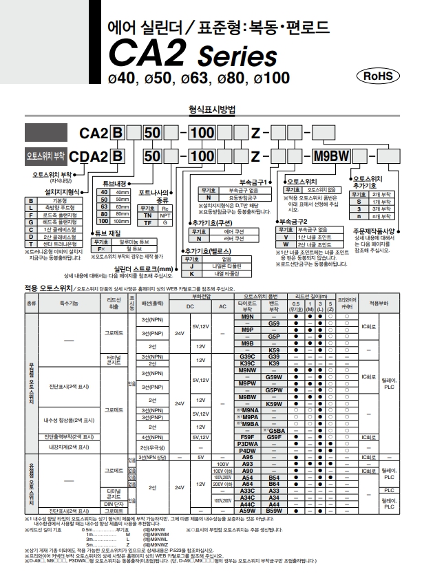 CDA2T50-230Z-A93, CDA2T50-25Z, CDA2T50-50Z, CDA2T50-75Z, CDA2T50-100Z, CDA2T50-125Z, CDA2T50-150Z, CDA2T50-175Z, CDA2T50-200Z, SMC 에어실린더 알아보기.