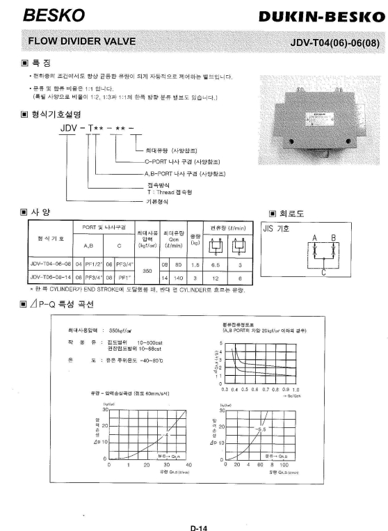 JDV-T04-06, JDV-T03-03, JDV-T04-04, JDV-T06-08, BESKO FLOW DIVIDER VALVE 알아보기.