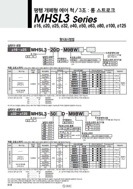 | MHSL3-80D | MHSL3-100D | MHSL3-125D | SMC 에어척 |