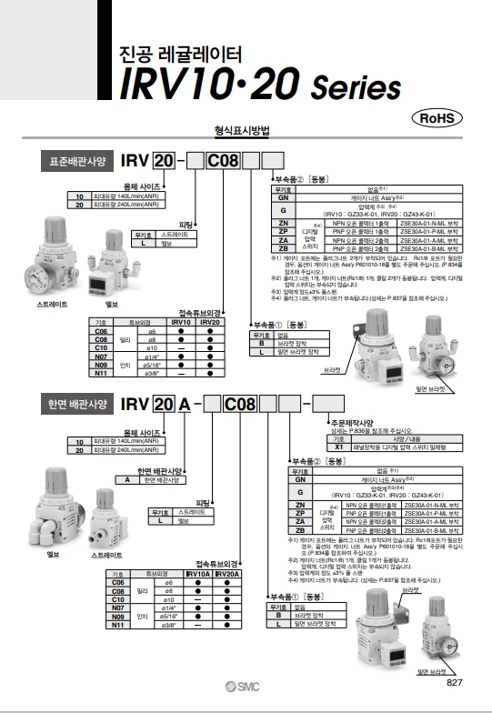 IRV20-LC10BG, IRV10-LC10BG, SMC 진공 레귤레이터 알아보기.