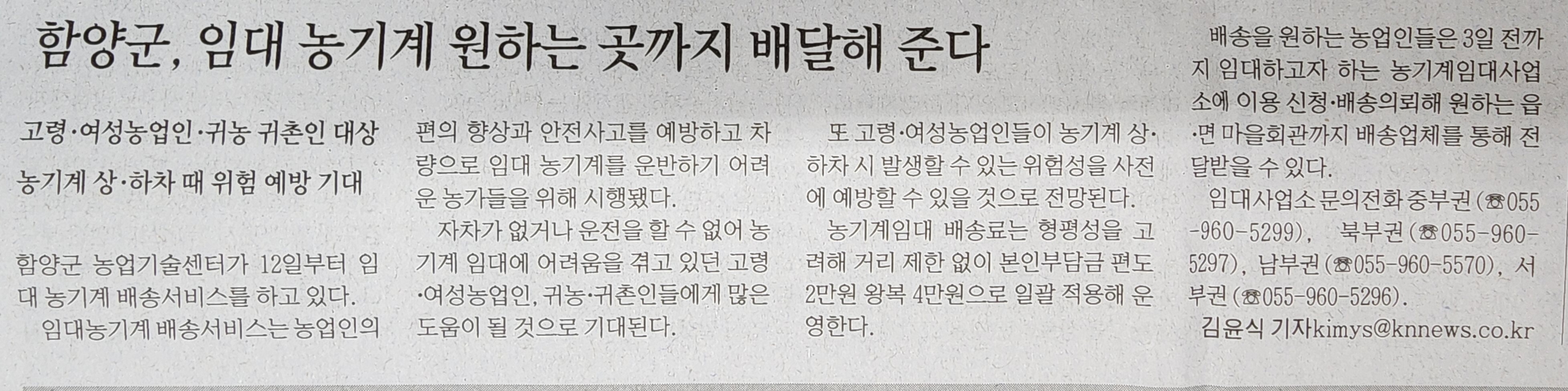 함양군 임대 농기계 원하는 곳까지 배달해준다.