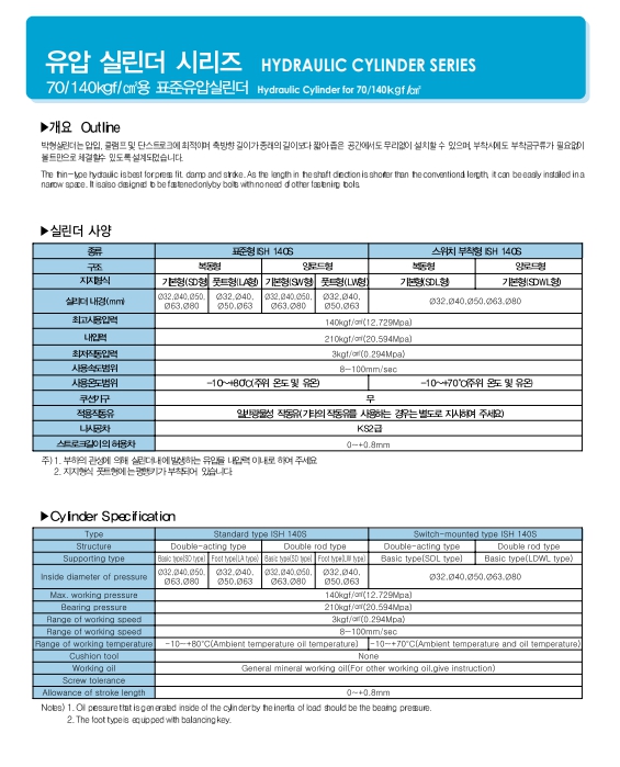 IS140S SD63-50M, IS140S SD63-40, IS140S SD63-15N, IS140S SD63-100M, IS140S SD63-70M, IS140S SD63-S30N, ISTC 유압 박형 실린더 알아보기.