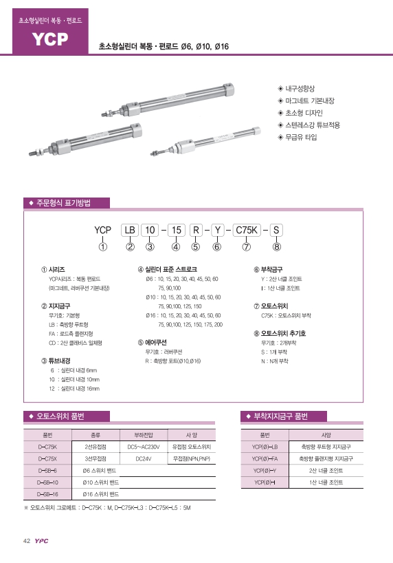 YCP6-10, YCP6-15, YCP6-20, YCP6-30, YCP6-40, YCP6-45, YCP6-50, YCP6-60, 연우 초소형 실린더 알아보기.