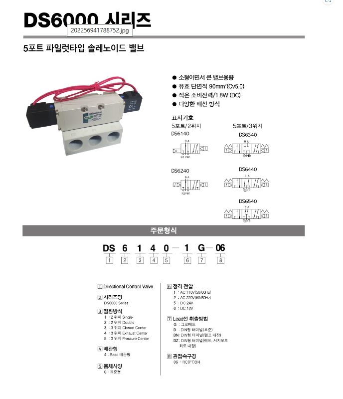 | DS6440-2DZ-06 | DS6540-2DZ-06 | TPC 5포트 파일럿타입 솔레노이드 밸브 |