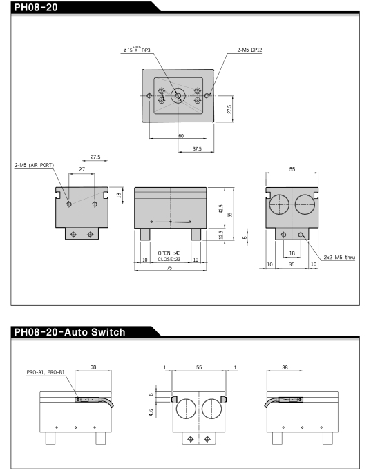 Compact 한 구조형태로 2본의 실린더를 Yoke에 의해 동기동작형 구조화시킴으로 안정된 파지력 발휘