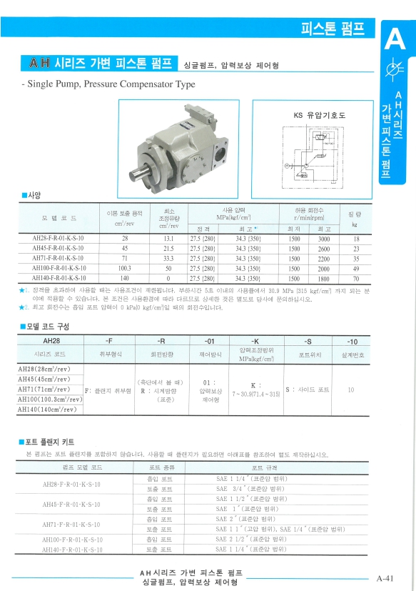 AH45-F-R-01-K-S-10, AH28-F-R-01-K-S-10, AH71-F-R-01-K-S-10, AH100-F-R-01-K-S-10, AH140-F-R-01-K-S-10, 세원 피스톤 펌프 알아보기.