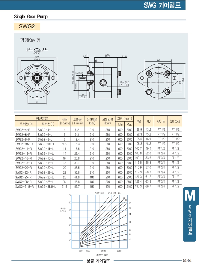 SWG2-9.5-R, SWG2-4-R, SWG2-6-R, SWG2-8-R, SWG2-11-R, SWG2-14-R, 세원 기어펌프 알아보기.