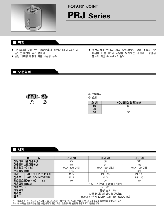 PRJ70, PRJ50, PRJ90, 프로텍 로타리 조인트 알아보기.