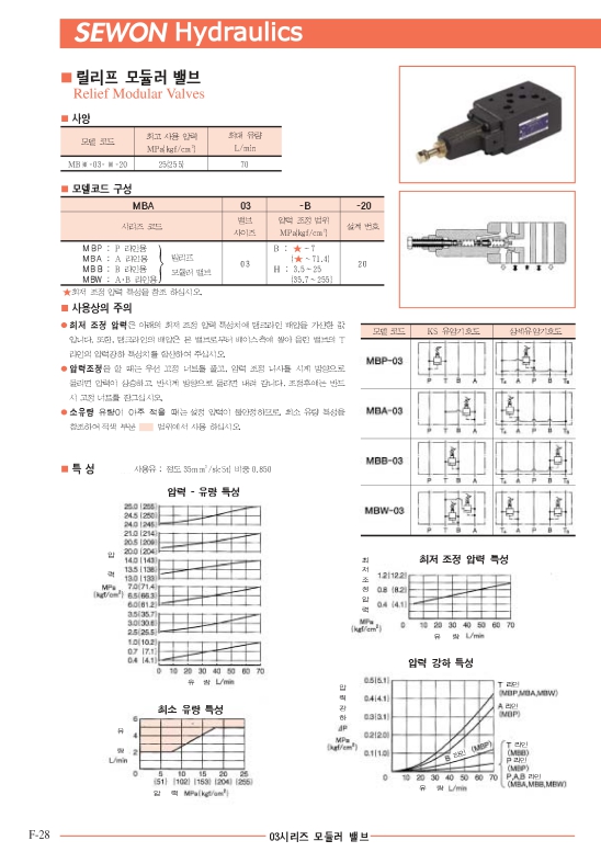 MBB-03-B-20, MBB-03-H-20, 세원 릴리프 모듈러 밸브 알아보기.