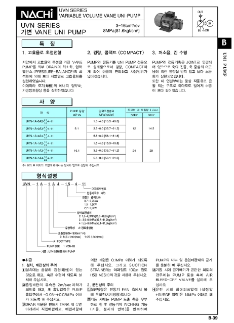 UVN-1A-1A4-22E-4L-6297E. UVN 베인펌프 알아보기.