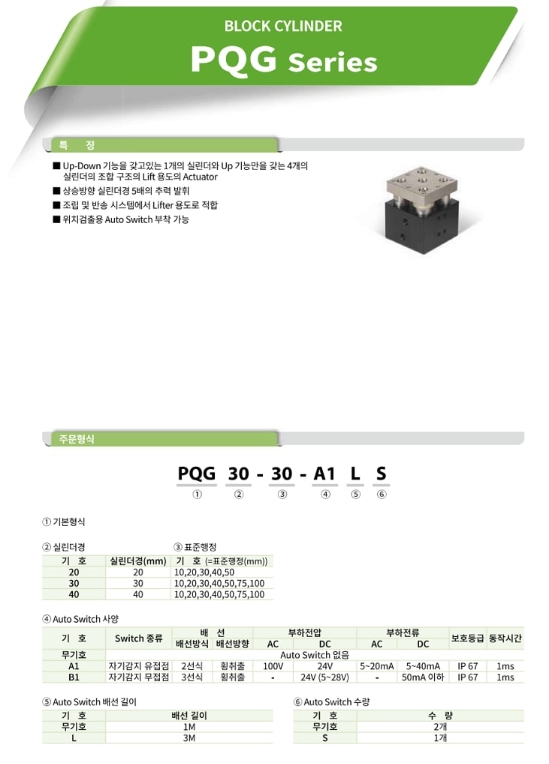 PQG40-100, PQG40-10, PQG40-20, PQG40-30, PQG40-40, PQG40-50, PQG40-75, 프로텍 블록 실린더 알아보기.