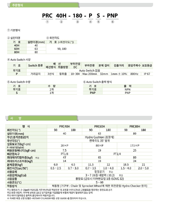 PRC60H-90, PRC60H-180, 프로텍 로타리 실린더 알아보기.