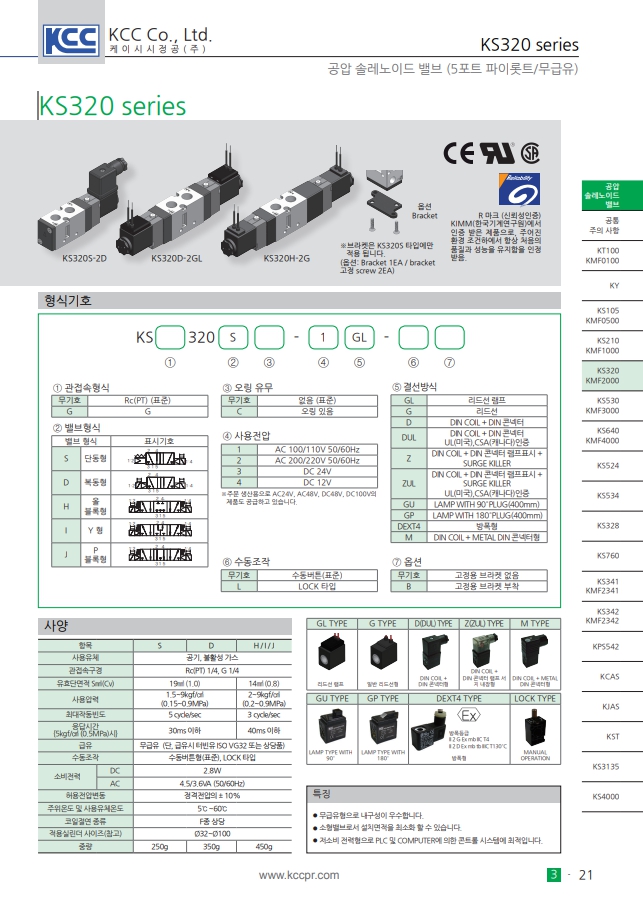 KS320S-3GL, KS320S-1GL, KS320S-2GL, KS320S-4GL, KCC 공압 솔레노이드 밸브 알아보기.
