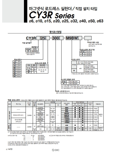 CY3RG40-300 SMC 마그넷식 로드레스 실린더
