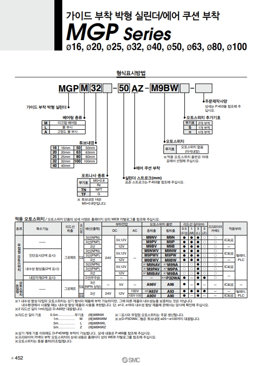 | MGPM20-300Z | MGPM20-350Z | MGPM20-400Z | SMC 가이드 부착 박형 실린더/에어 쿠션 부착. |