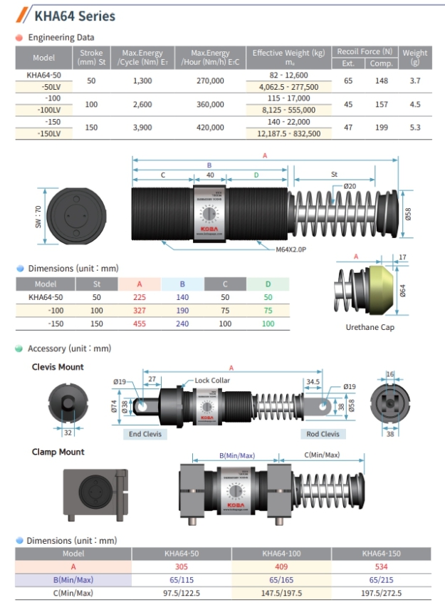 KHA64-150, KHA64-50, KHA64-100, KHA64-50LV, KHA64-100LV, KHA64-150LV. 코바 쇼바.
