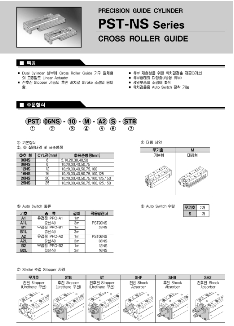 PST08NS-10-M, PST08NS-20-M, PST08NS-30-M, PST08NS-40-M, PST08NS-50-M, PST08NS-75-M, 프로텍 가이드 실린더.