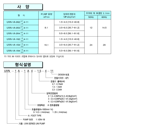 UVN-1A-1A3-15-4-6141E, 대성산업 UVN SERIES 가변 VANE UNI PUMP 알아보기.