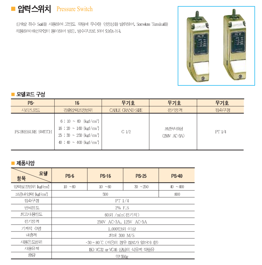 PS-16 압력스위치 하이파워 . PRESSURE SWITCH