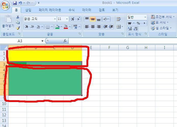 임의로 셀 영역을 합쳐서 만들어서