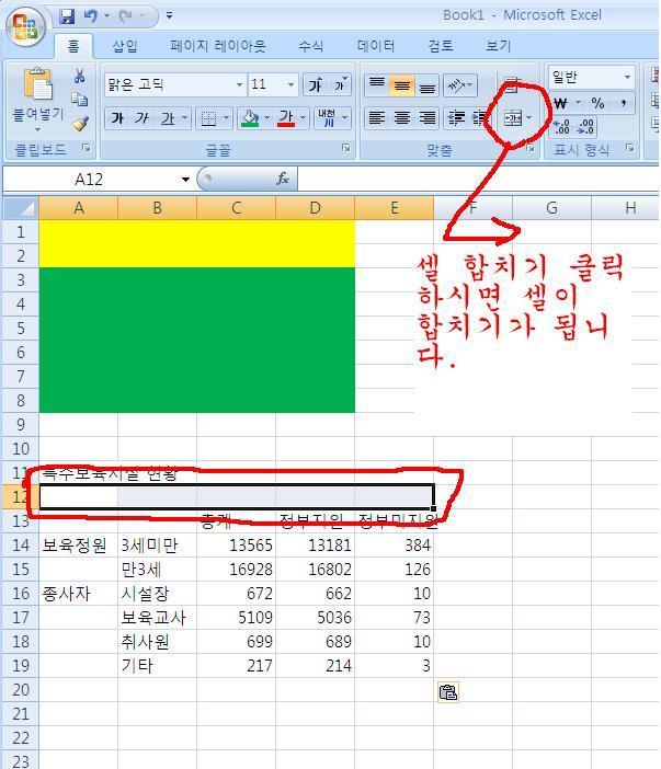 아주 간단하게 됩니다. 클릭한번에 셀합치기가