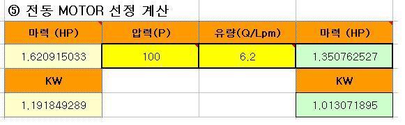 그리고 모터의 마력을 구하는데 사용 압력과 유량을 넣으시면 필요한