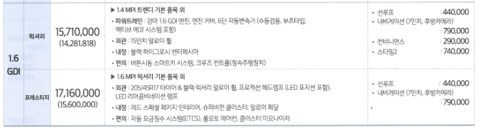 1.4가솔린과 1.6가솔린 중에 5도어 나오는데 가격은 착합니다.