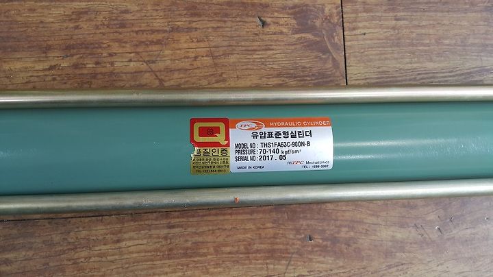 유압표준실린더 사양은 THS1 FA63C-900N-B 사양입니다. 사용 압력은 140KG 입니다.