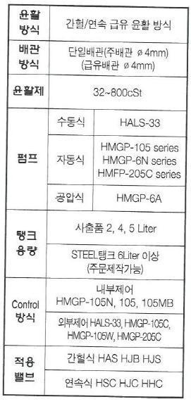 정량급유 : 각종 MCT, CNC, 사출기 등 중앙 집중식 윤활시스템.
